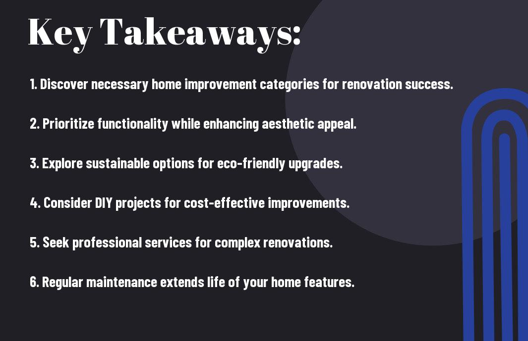 Improvement opportunities abound as you begin on your home renovation journey. By exploring the top categories in your home improvement directory, you can unlock the potential of every space in your house, from the kitchen to the garden. This guide will walk you through crucial areas to focus on, equipping you with the knowledge to make informed decisions that enhance both functionality and aesthetics. Dive in and discover how you can transform your home into a space that reflects your style and meets your needs.